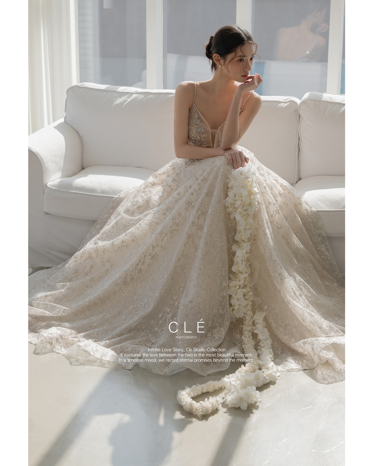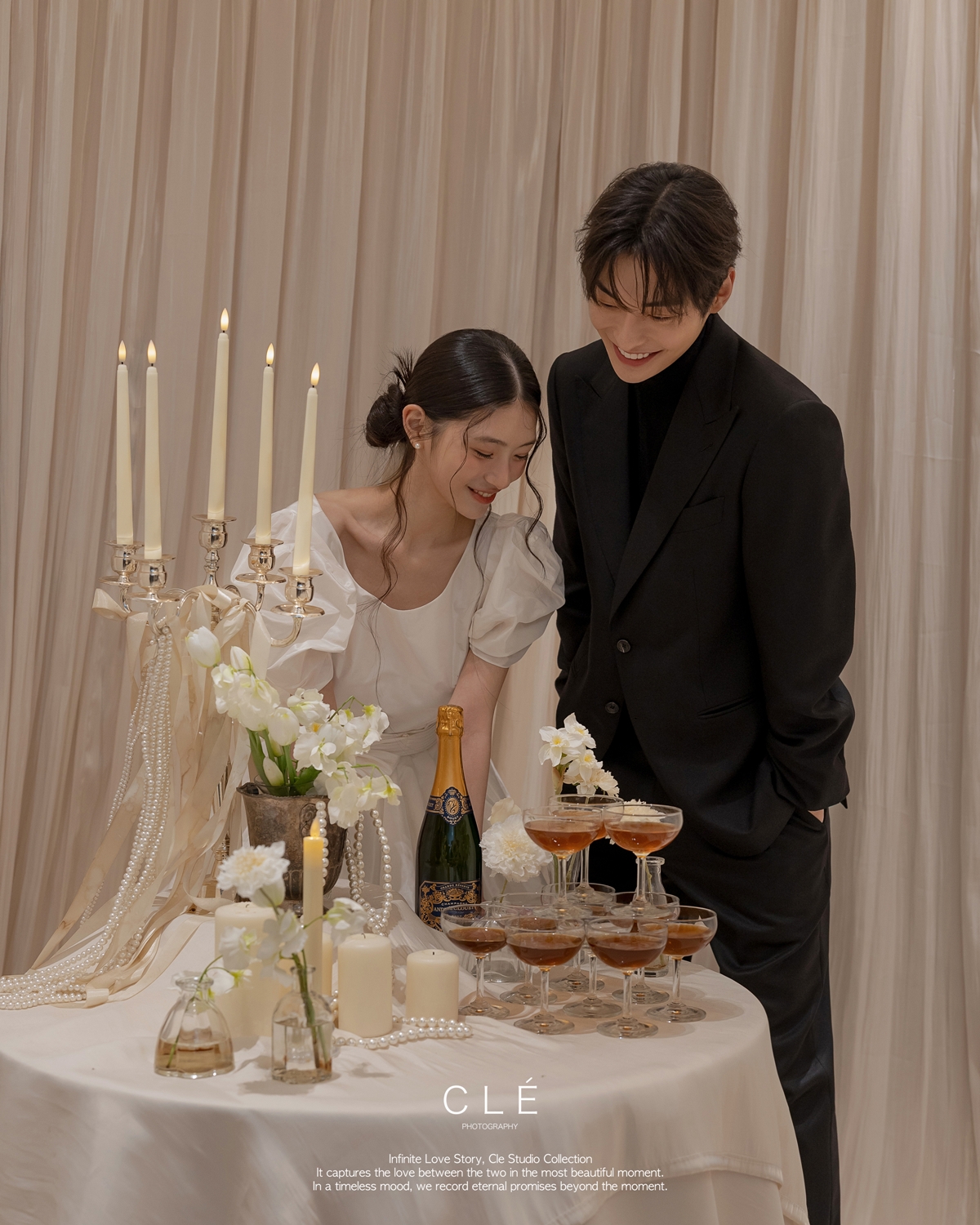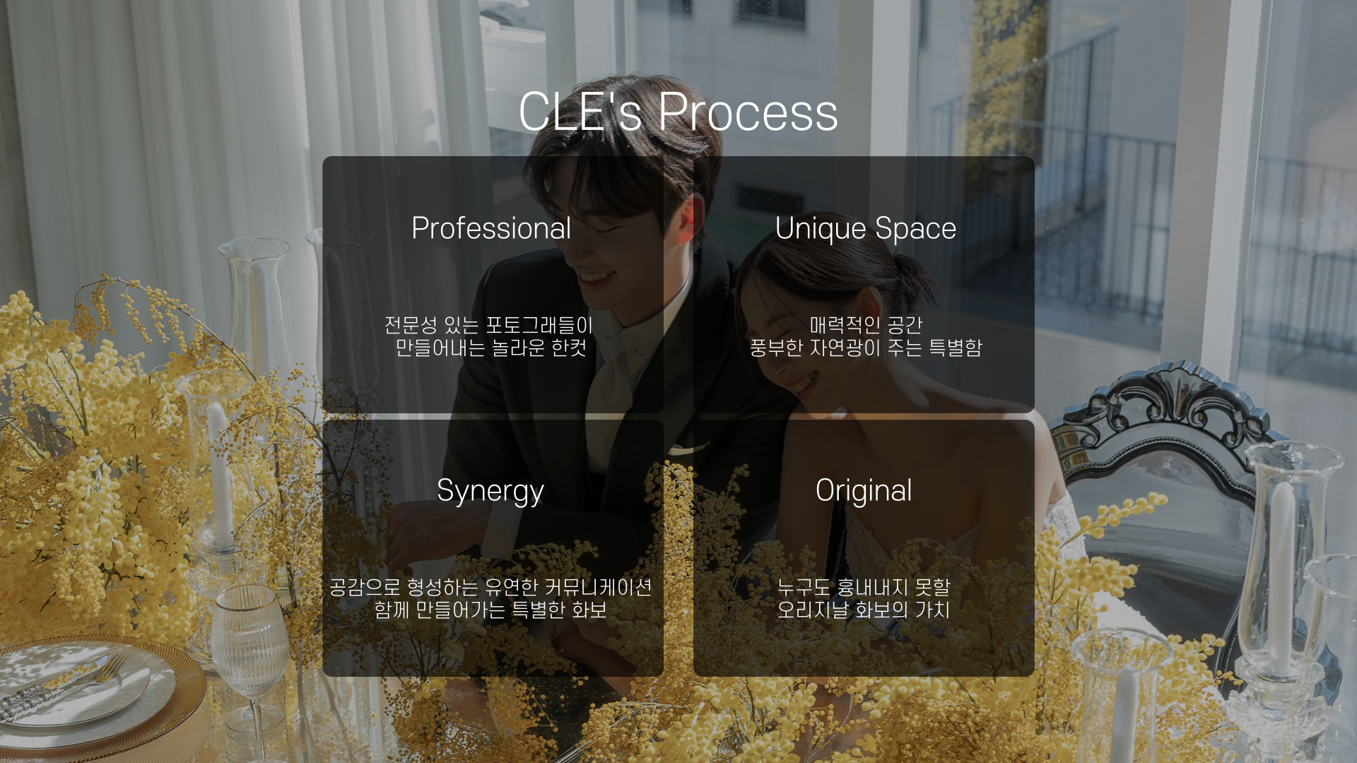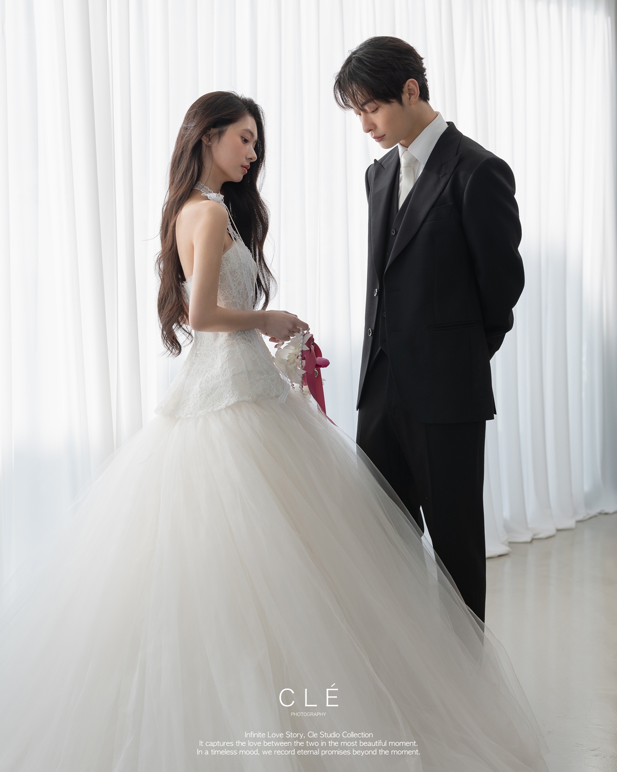 - 정형화된 웨딩사진을 넘어 신랑 신부의 본질적인 아름다움이 빛날 수 있도록 섬세하고 세련된 디렉팅을 제공합니다.